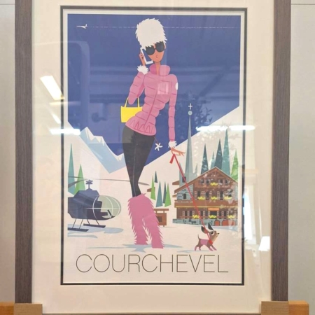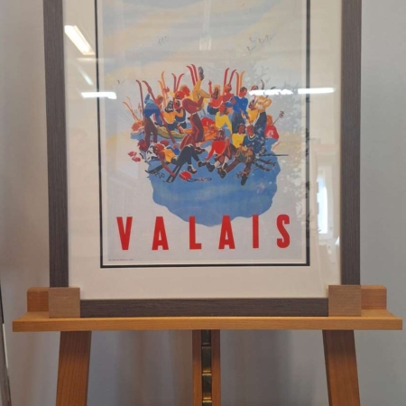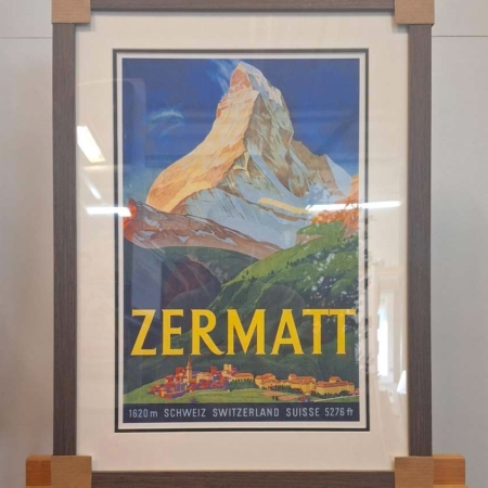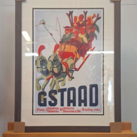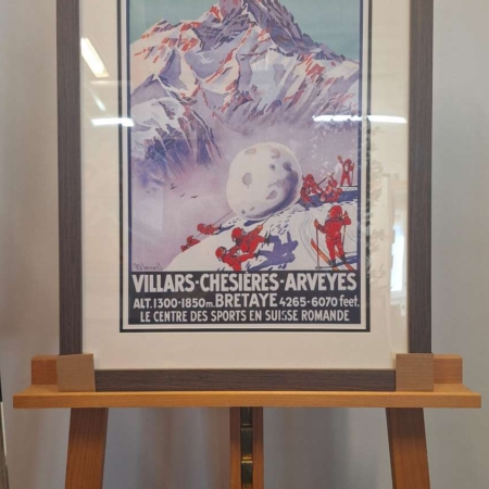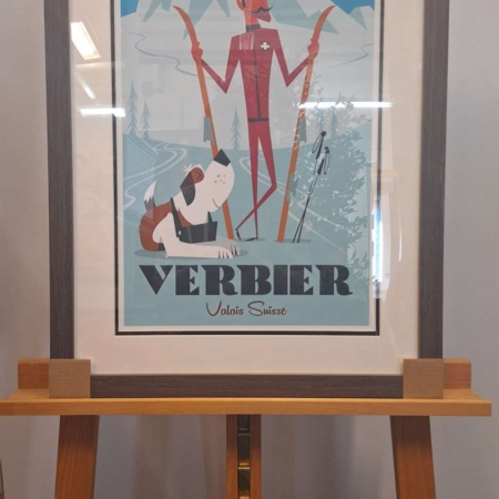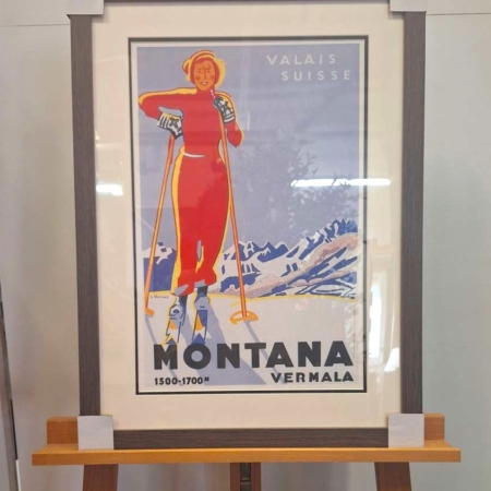• Encadrement décoratif regroupant des affiches vintage de stations de ski alpines comme Verbier, Davos, Megève ou Zermatt, style rétro montagne