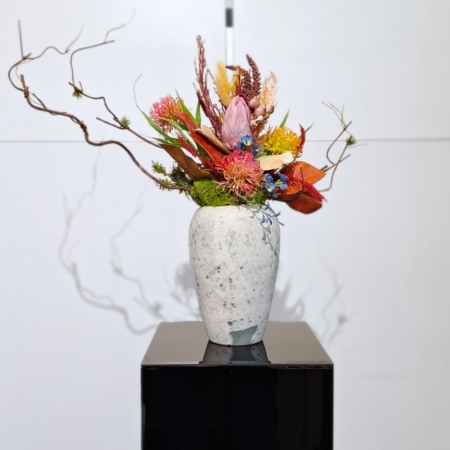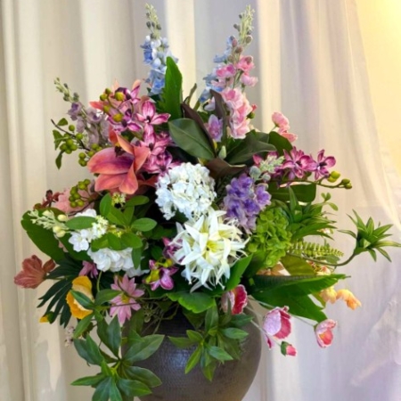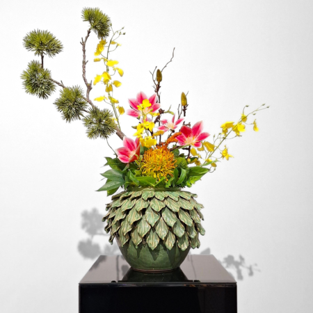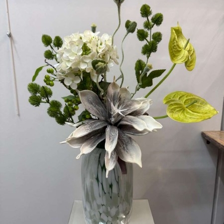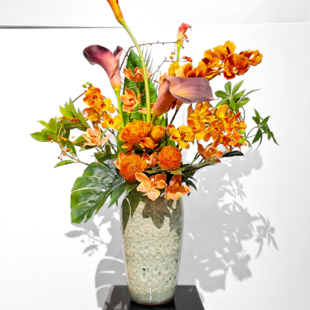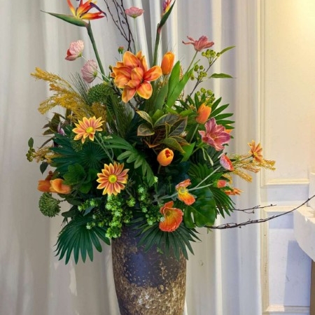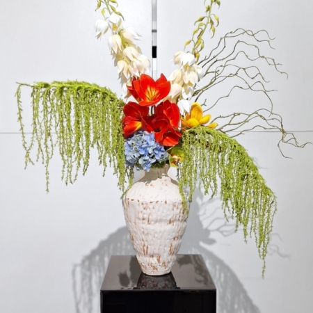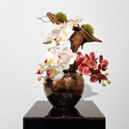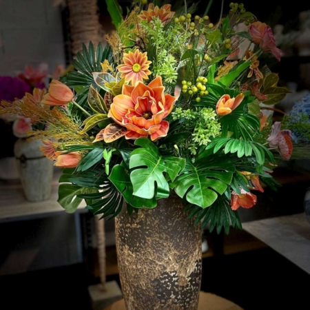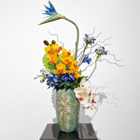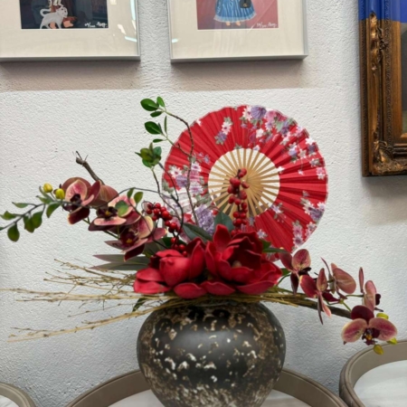 L’amour l’a transportée en Suisse où elle a installé son atelier chez Starsdeco, grâce à ses fleurs artificielles de haute qualité, elle défie le temps et ses arrangements originaux offrent toute une palette de couleurs. Chaque bouquet qu’elle dessine, crée et assemble raconte une histoire. Que vous soyez hôtelier, restaurateur, particulier ou pour vos espaces professionnels, ses bouquets souligneront l’élégance et le côté chaleureux de votre lieu.