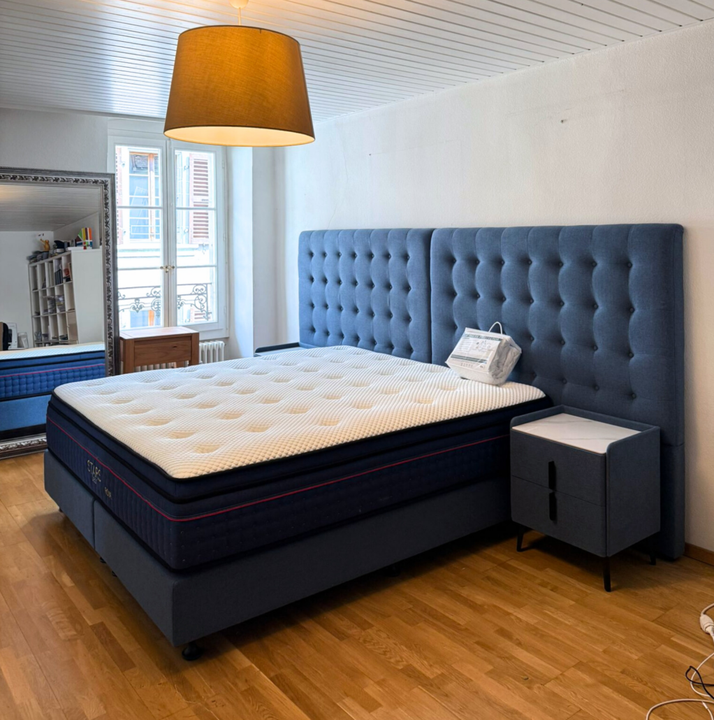 Chez Starsdeco, le confort rencontre l’élégance. Spécialistes de la literie haut de gamme à Genève et Lausanne, nous concevons et fabriquons des lits et matelas d’exception qui allient design raffiné, matériaux d’excellence et innovation technologique.