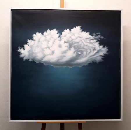 AC026C, Le nuage, original, signé, encadrement baguette blanches, 126x126cm.