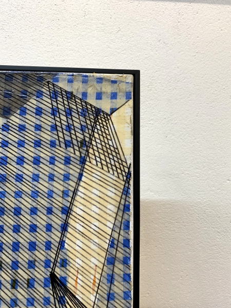 AC034A, Original, collage et peinture à l’huile, baguettes noires, 120x150cm.