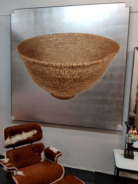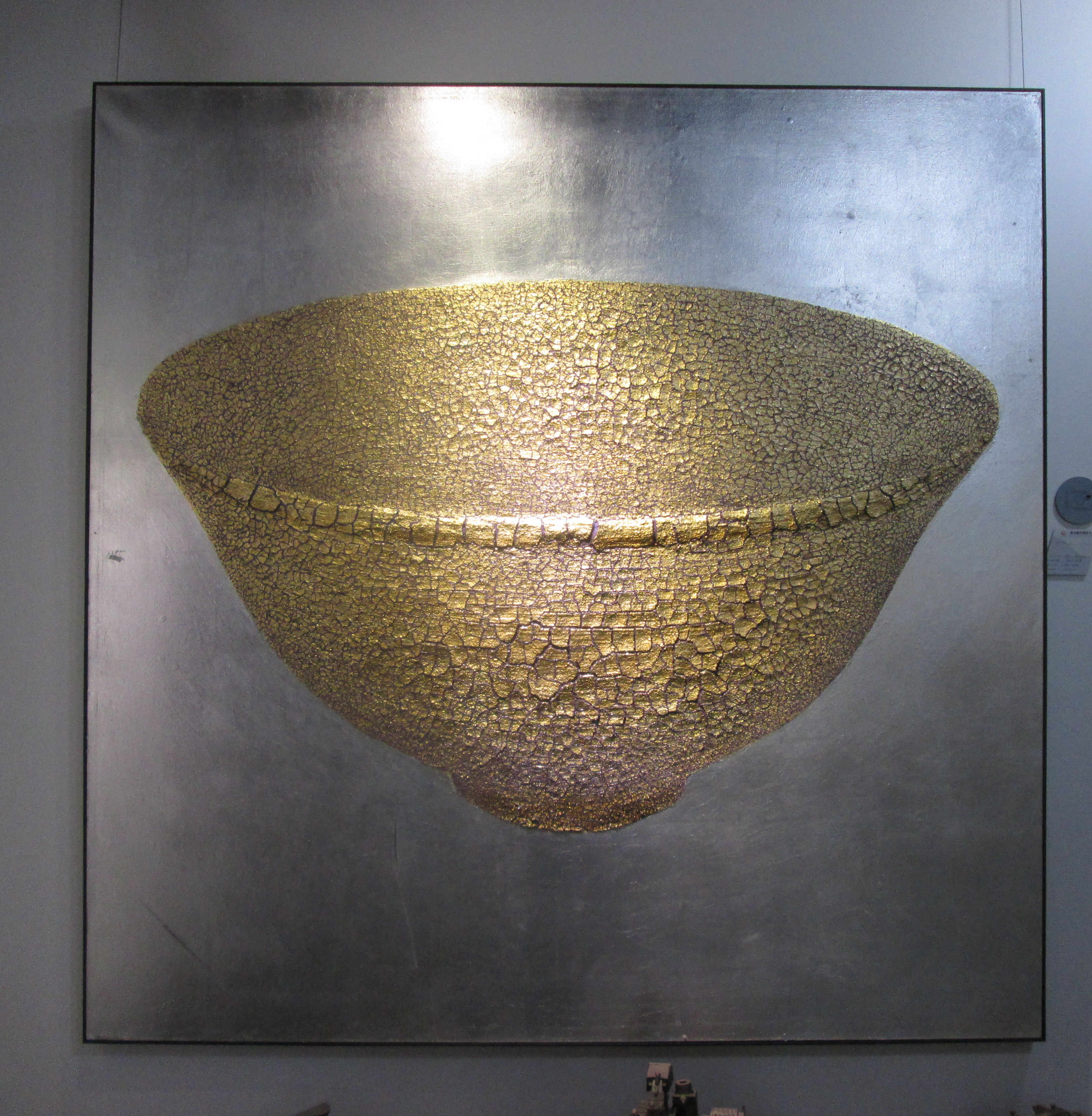ÉCUELLE, toile originale, signé, feuilles d’argent, texture lourde, 200x200cm