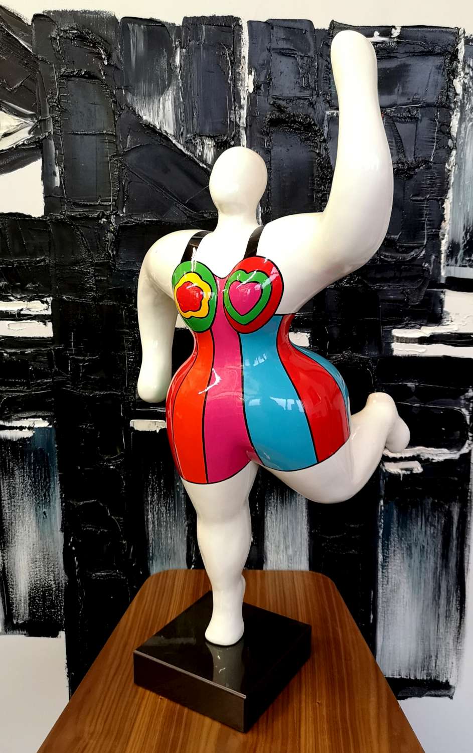 SC046A, Sculpture en résine, « Nageuse » blanche, inspiration Niki de St Phalle, 82x39x30cm. Collection Starsdeco.