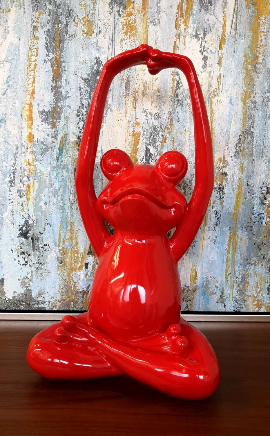 | SC058A, Sculpture en résine, « Grenouille » rouge, 60X37X26cm. Collection Starsdeco. |