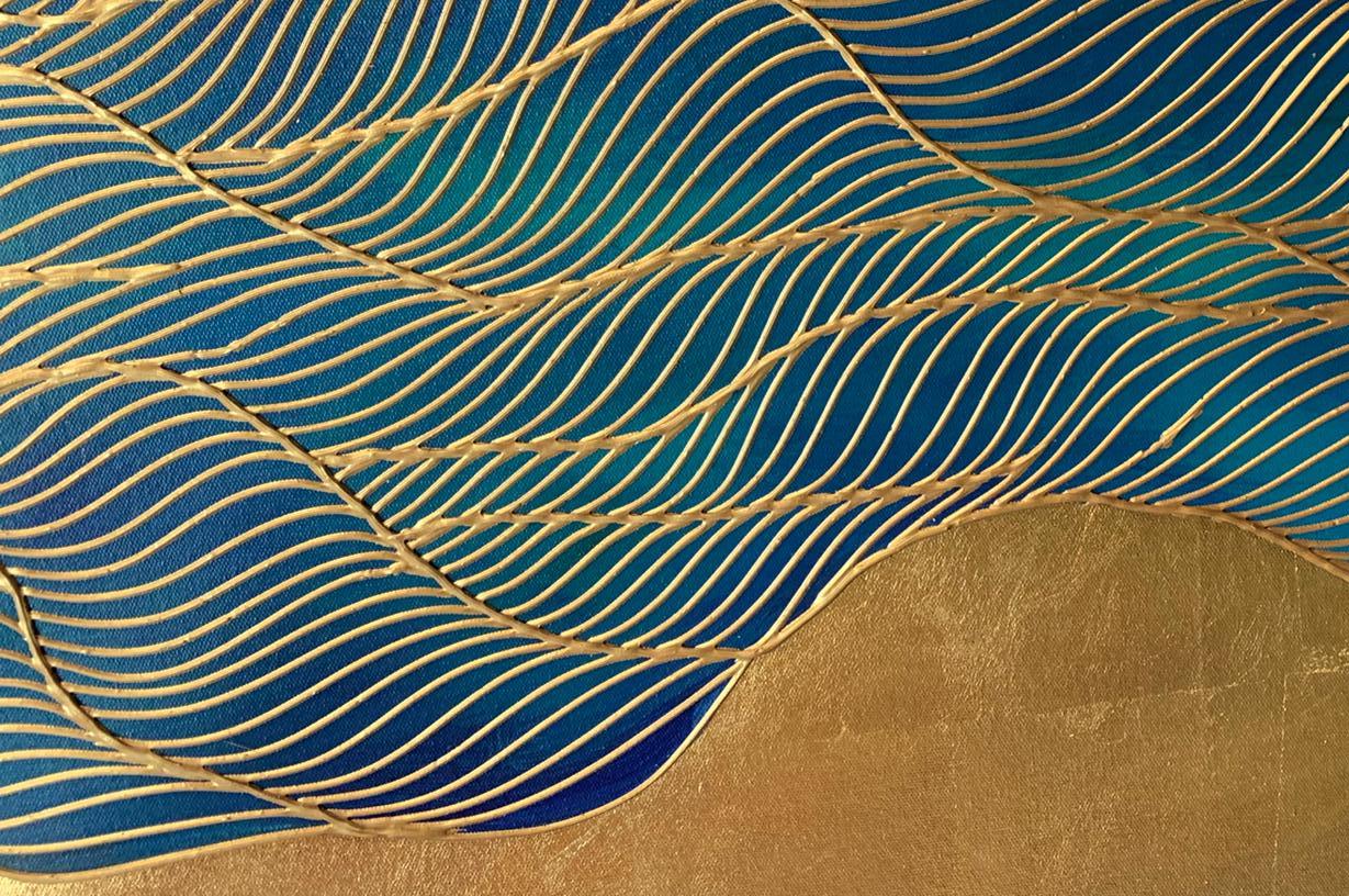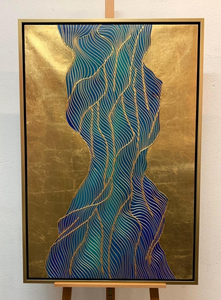 IR008B, Reproduction à la manière de T.Cheng, peinture à l’huile, texturé, encadrement gold, 80x120cm.