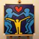 IR012B, A la manière de Keith Haring, encadrement baguette américaine noire, 65x65cm.