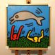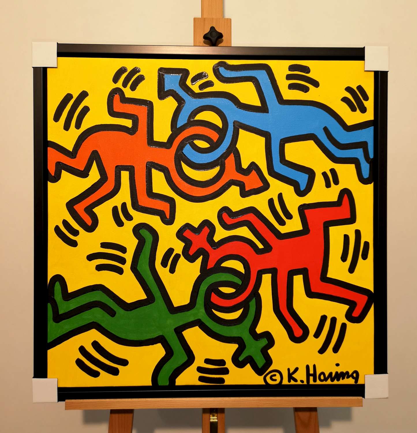 IR012B, A la manière de Keith Haring, encadrement baguette américaine noire, 65x65cm.