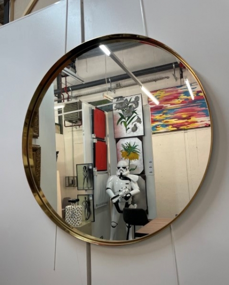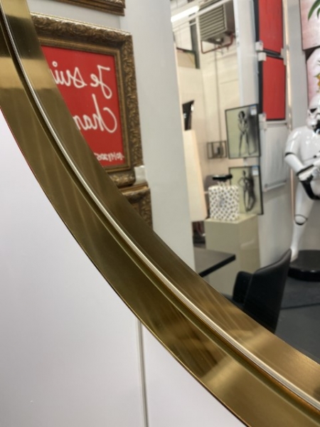 MI030, Miroir MADEMOISELLE, rond diamètre 100cm, gold, avec rebord métal extérieur 5cm et intérieur 3cm.