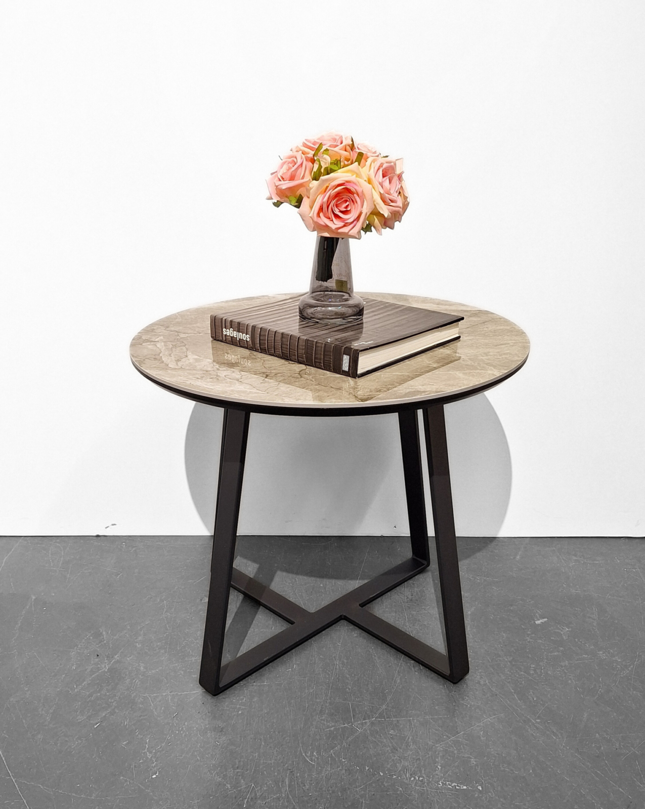 MOB013 Table d’appoint ELEGANCE, céramique marbrée, 60cm de diamètre, 52cmH