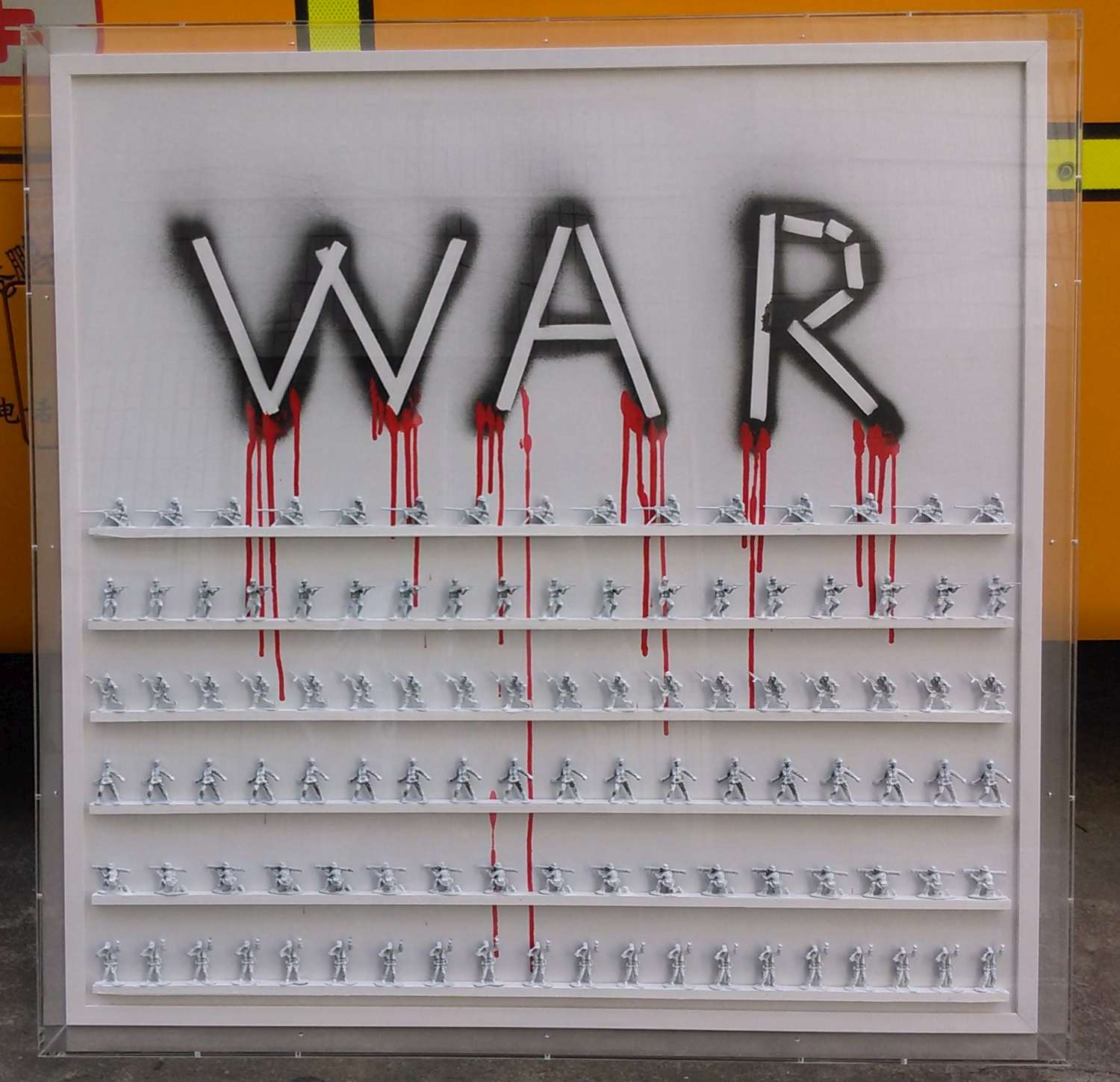 WAR by Tessi, boîte plexi, 100x100cm