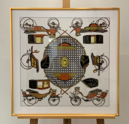 PC058A, Carré Hermès 2, reproduction sur crystal, encadrement alu doré, 60x60cm.