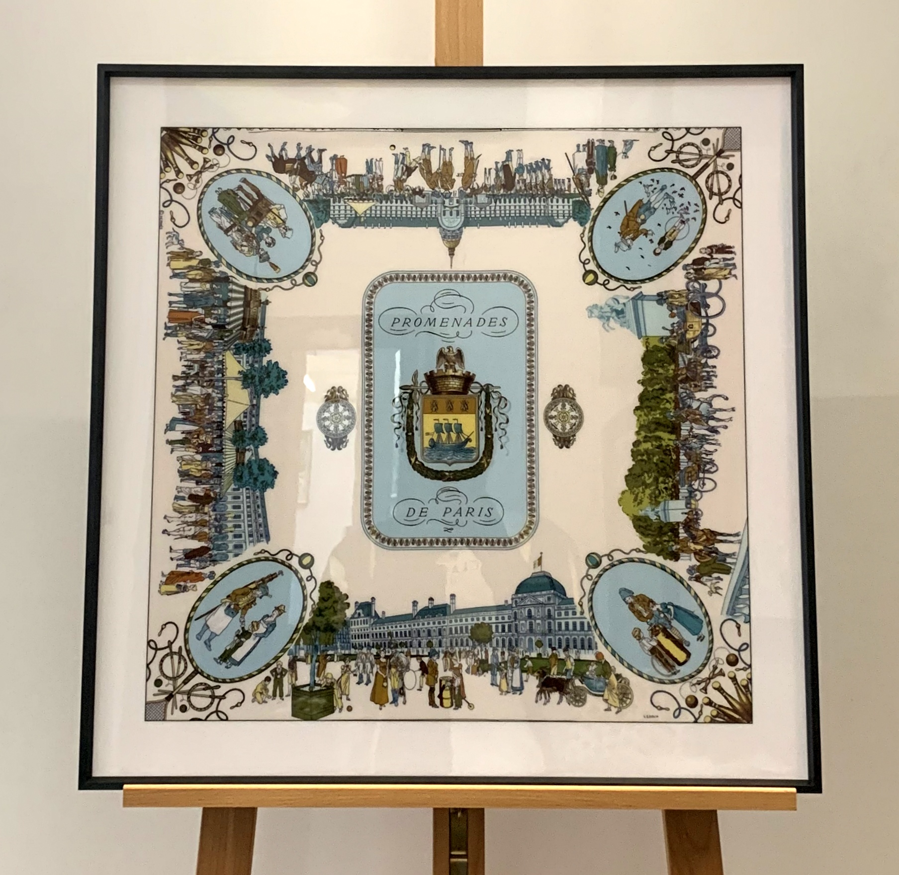 PC058I, Carré Hermès 10, reproduction sur crystal, encadrement alu noir, 60x60cm.