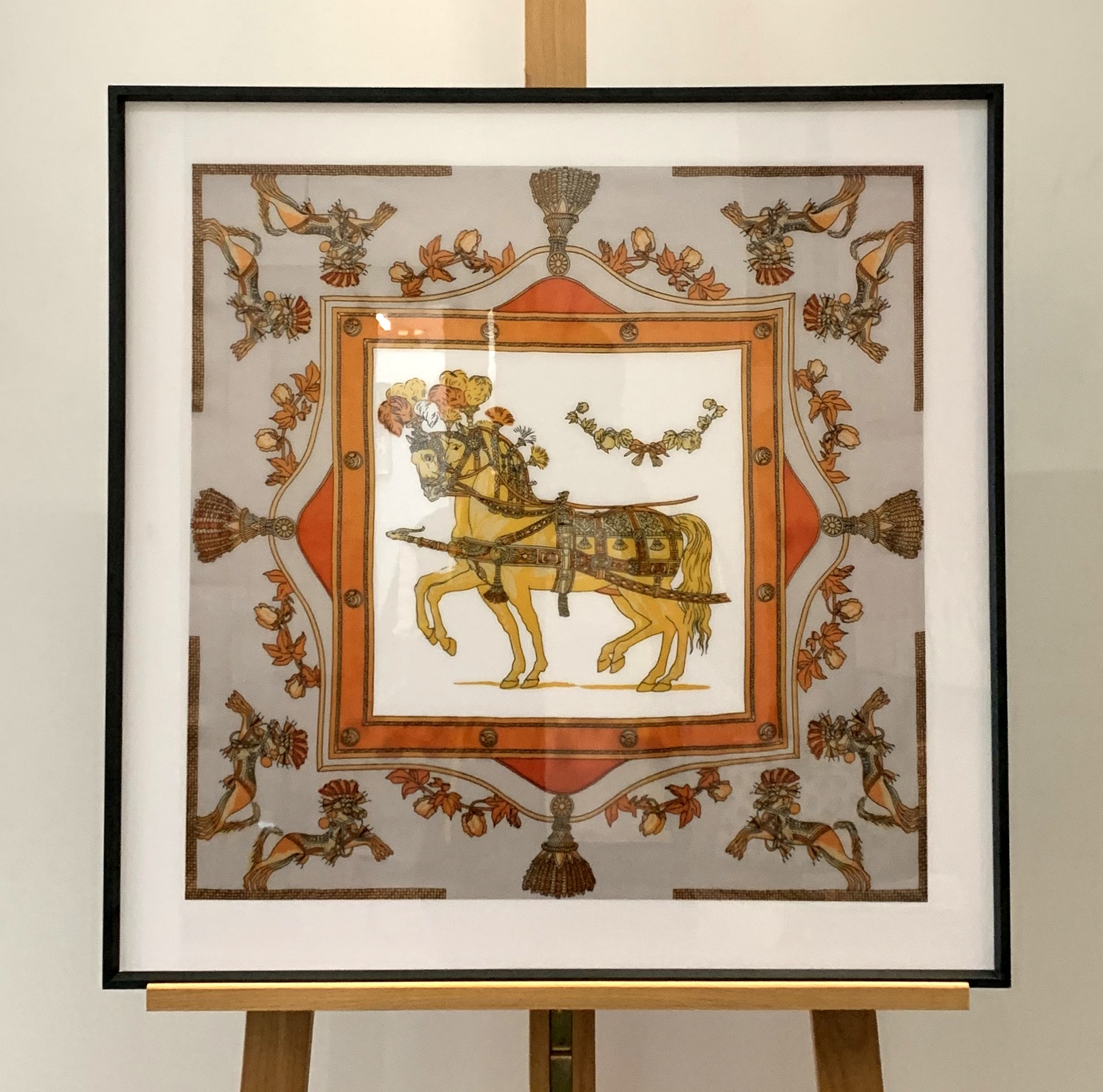 PC058M, Carré Hermès 14, reproduction sur crystal, encadrement alu noir, 60x60cm.