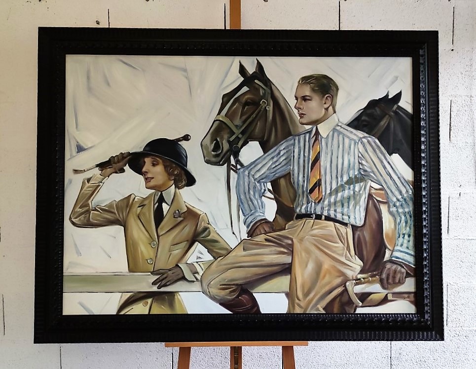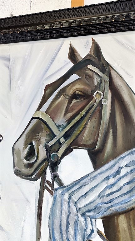 SD043B, Journée à l’hippodrome, Art déco, encadrement baroque, 115x164cm.