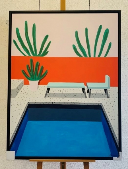 SD045B, Floride b, oeuvre signée, peinture à l’huile, encadrement baguette américaine noire, 95x125cm.