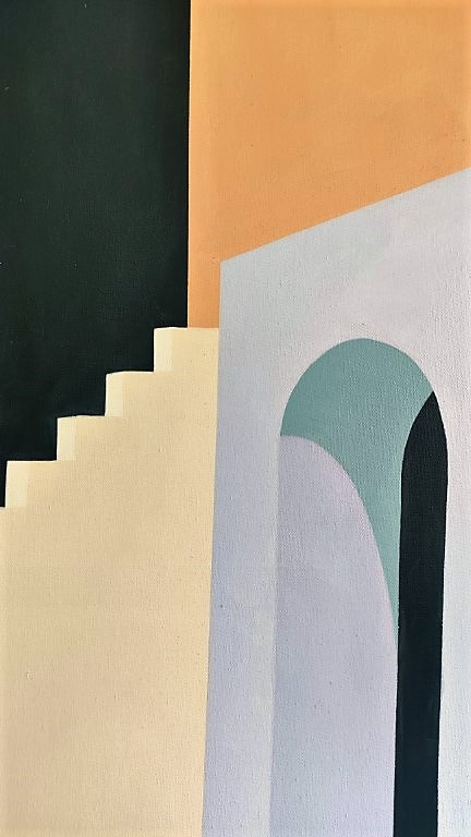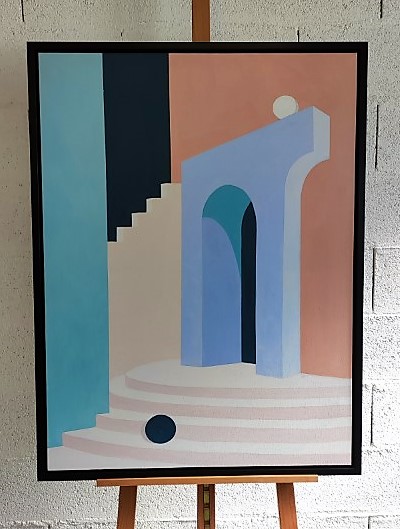 SD045F, « RIAD 2 », œuvre peinture à l’huile, encadrement baguettes américaines noires, 80x105cm.