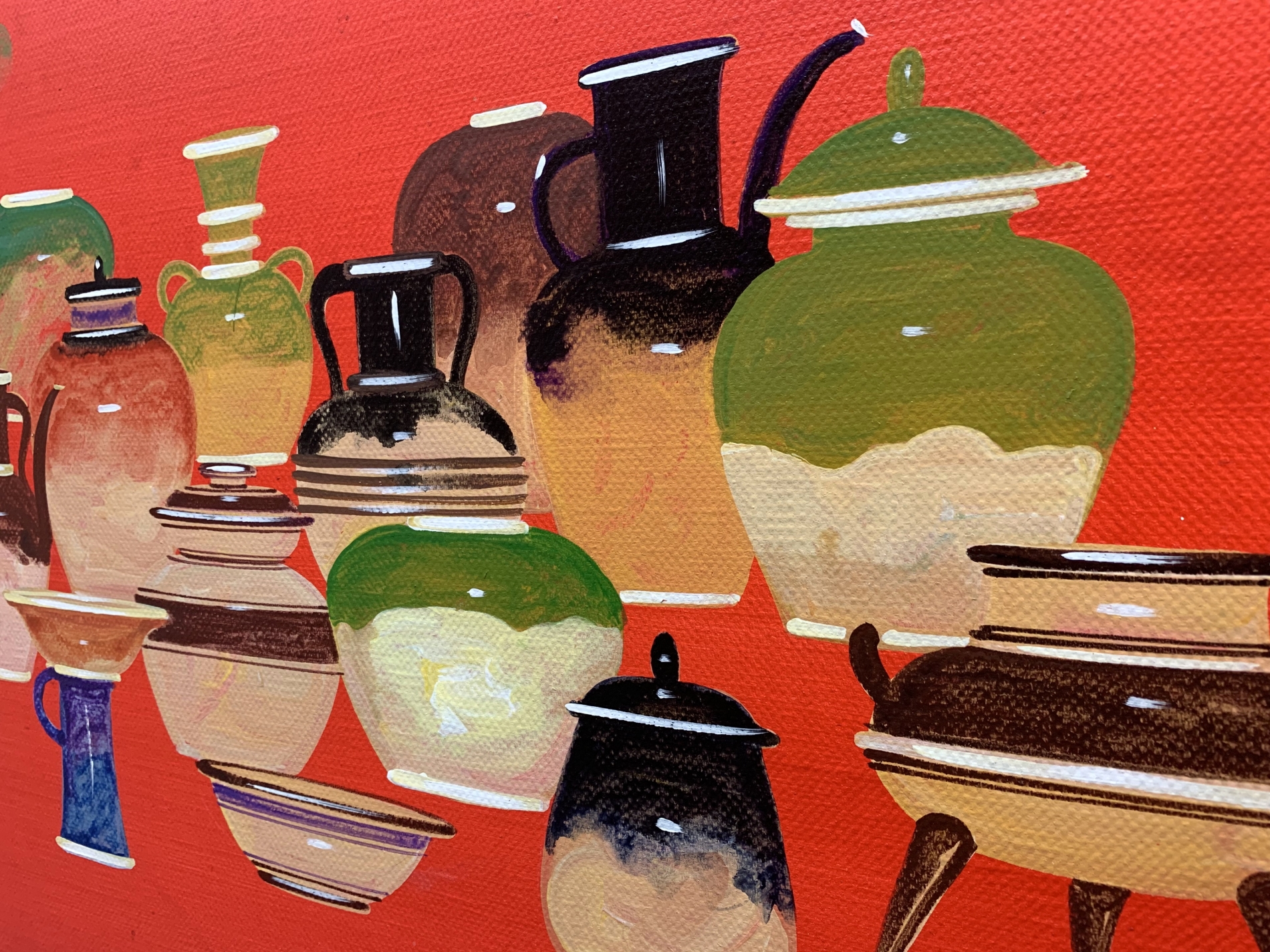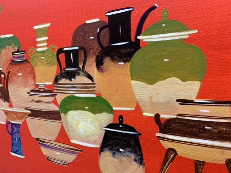 SD059C, Poterie Japonaise, peinture à l’huile, original, signé, encadrement baguettes noires, 160x60cm.